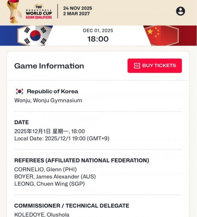 中韩二番战今晚打响!杜锋担任解说,3大裁判出炉一人曾执裁过CBA